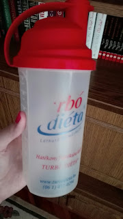 A rázópohár két hét masszív használat után így néz ki, kicsit megkopott rajta a szöveg, de szerintem nem vészes. 300 ml 1,5%-os tejhez 4 kanál port kellett adni. Én így fogyasztottam reggel és este, délben pedig vízzel csináltam, ekkor 5 kanál port kellett hozzáadnom. Bevallom őszintén, az első két-három alkalommal rosszul kanalaztam, mert úgy emlékeztem, hogy három kell a tejhez, és négy a vízhez... ezért is maradt még pár kanál porom a legvégére. :D De utána észrevettem magam, és a fejfájásom is elmúlt. Én egyébként ettől tartottam nagyon, mert ha sokáig nem eszem, akkor jelez a fejem, de való igaz, hogy ebben a cuccban minden szükséges megvan. Miután megittam, telítve éreztem magam, és nem is kívántam mást.